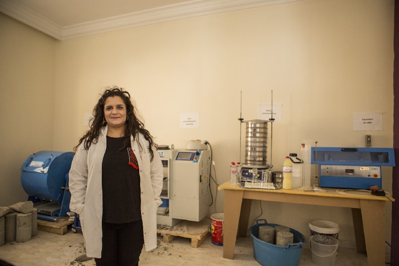 Jammal est une ville côtière pas très loin de Mahdia, un pôle assez réputé pour l’industrie textile et du brique. On aurait pensé que Besma se serait plutôt tournée vers les débouchés déjà existants dans sa région natale, mais elle a eu le courage de se lancer dans un domaine généralement masculin et peu glamour pour une femme. Armée de sa blouse blanche de technicienne de laboratoire, elle s’évertue à rendre les constructions plus solides et plus sécurisées.