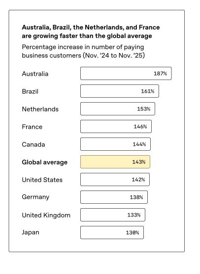 Le rapport repose sur les données de clients professionnels OpenAI Enterprise, principalement situés dans les grandes économies technologiquement avancées, comme les États‑Unis, l’Europe ou le Japon. Pourtant, d’autres régions connaissent une croissance spectaculaire: l’Australie arrive en tête, suivie du Brésil, des Pays-Bas, de la France et du Canada, avec des hausses de plus de 140 % du nombre de clients professionnels en un an. Les États‑Unis, le Royaume‑Uni et l’Allemagne figurent également parmi les plus grands marchés en termes d’adoption d’IA d’entreprise, notamment pour les offres Enterprise.