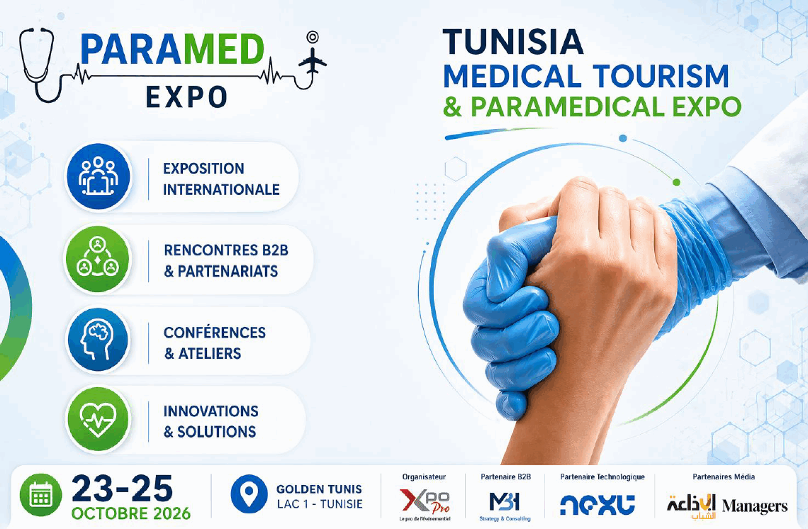 La 3ème édition s’annonce désormais Tunisia Medical Tourism & Paramedical expo et se tiendra du 23 au 25 octobre 2026 à Golden Tunis, aux berges du lac.